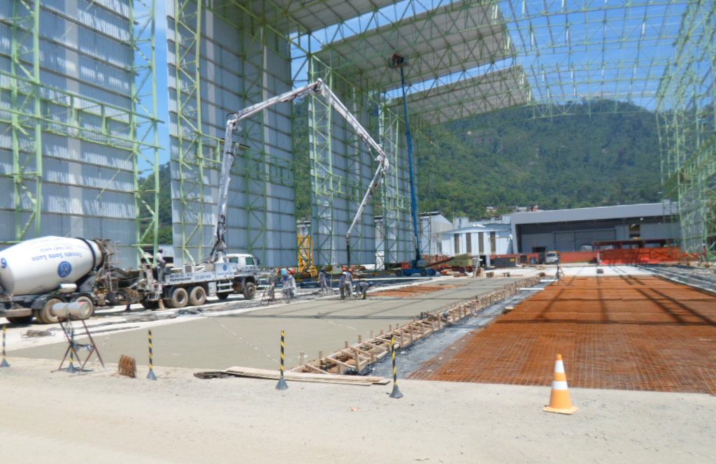 • Escopo: Construção de 12 galpões com altura aproximada de 28 metros, vão livre de 40,00 metros e comprimentos de 20,00m. Piso com capacidade de 10t/m².