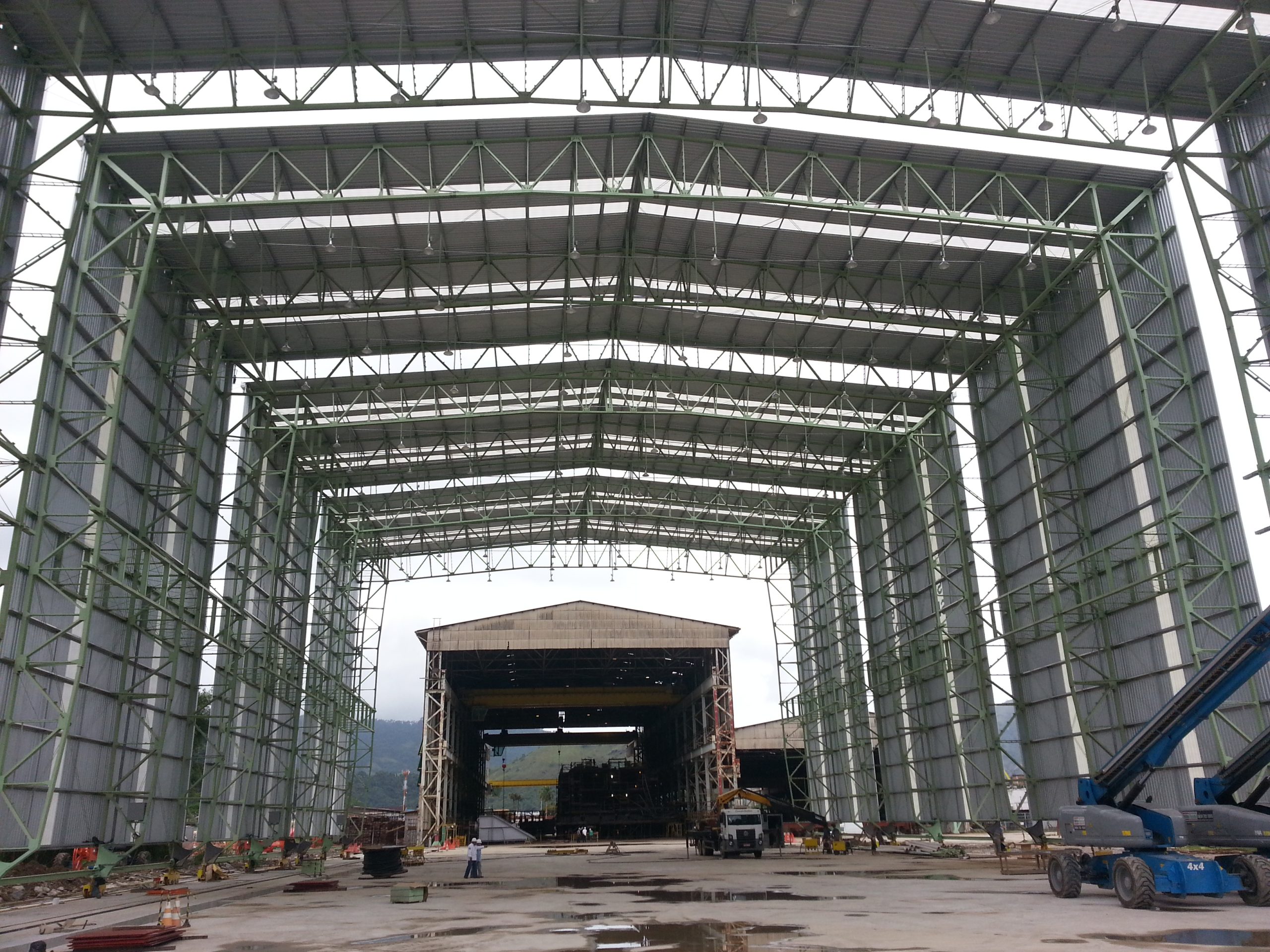 A implantação dos galpões móveis para o Estaleiro Brasfels em Angra dos Reis/RJ foi pautada pela agilidade e flexibilidade construtiva. O projeto atendeu às demandas logísticas com soluções práticas e adaptáveis ao contexto operacional da indústria naval.